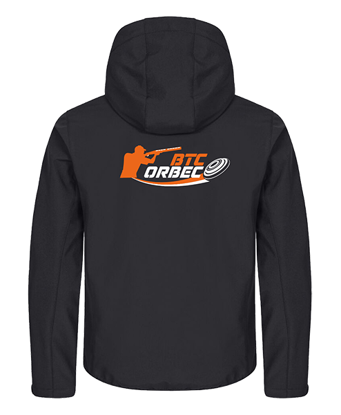 VESTE SOFTSHELL CAPUCHE noire avec logo brodé Taille : XS/S/M/L/XL/2XL/3XL/4XL